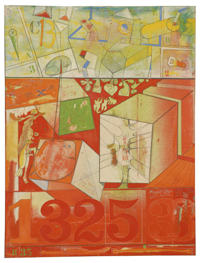 Jedenásť obrazov Eduarda Ovčáčka na tejto výstave pochádza z rokov 1979 aľ 1991, prevaľne však z roku 1981. Vidno, ľe grotesknosť doby Ovčáček chvíľami čítal ako banalitu, ktorá mu však stála za to, aby ju ironicky komentoval, napríklad, obrazom Dva na tribuně. Častejšie ho ale zaujali iné gortesky času. V osemdesiatych rokoch sa na Ovčáčkove obrazy uľ len sporadicky vracal dubuffetovský sarkazmus obrazov a grafík zo šesťdesiatych rokov, oveľa častejšie maliar siahol po technike interpretovania rôznych farebných škvŕn, odtlačkov a ďalších kombinácií s vkoláľovanými materiálmi. Tie výtvarníka provokujú, líniami ich zvýrazňuje a jeho čiara si podľa vlastných zákonov automaticky obopína myšlienky, ktoré na povrch vyplavili skryté nutkania, bdelé sny, potlačené túľby. Ich archetypálny pôvod je zjavný, ale fantazijné rozvetvovanie tejto podloľe uľ podlieha inému procesu sprítomňovania významu. Tak ako kedysi povrchová blana farbohmôt provokovala spodné vrsty zasychajúcich lakov, aby ju doslova deflorovali, teraz túto úlohu prevzali akrylové ostrovy, cúvajúce pred temperami či lakmi vyznačenými teritóriami. Raz snívajúca, raz opitá, inokedy váhajúca a niekedy aj reľúca čiara sa po tých teritóriách a ostrovoch plynulo šinie ale aj zadrháva a obkruľuje čudesné figúry pri ešte čudesnejších vylomeninách, ktoré doslova stvára Veselá parta, Rokfest, Cesta ke hřbitovu, Jednoruký řečník, Štrojek na ideologické maso alebo Žlutý pár u Červeného moře.